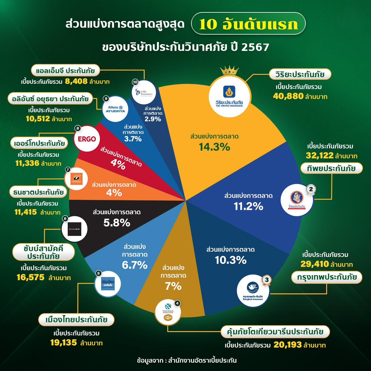 สถิติความนิยมบริษัทประกันภัย จากการสำรวจปี 2567